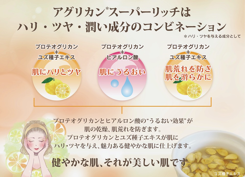 アグリカン*スーパーリッチはまさに糖鎖(グリカン)***のハーモニイともいえるユニークな化粧品です。